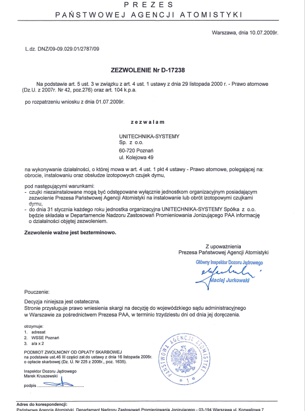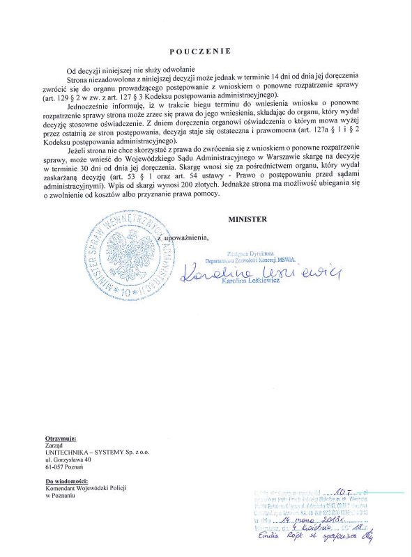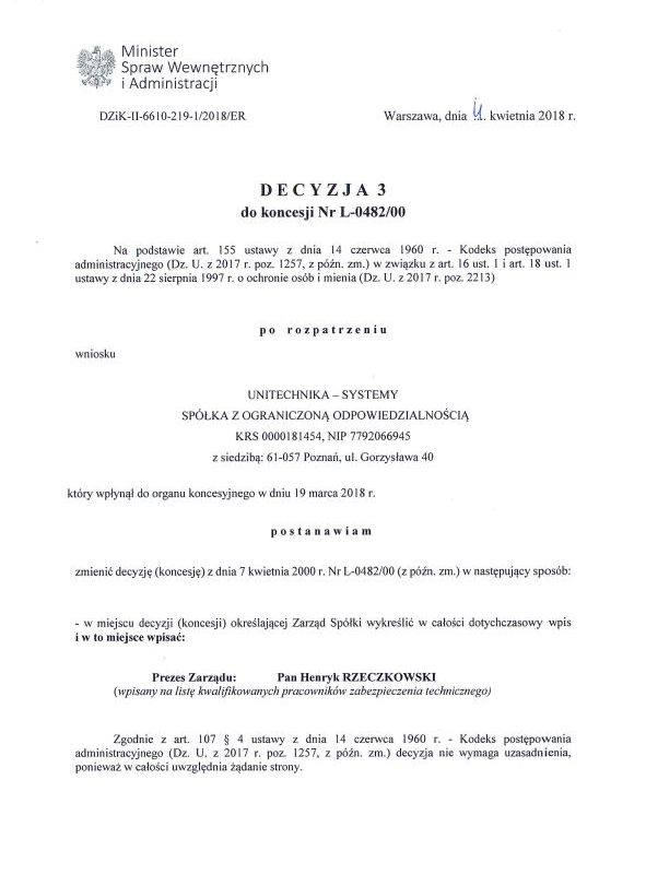Firma Unitechnika otrzymała koncesję MSWiA
